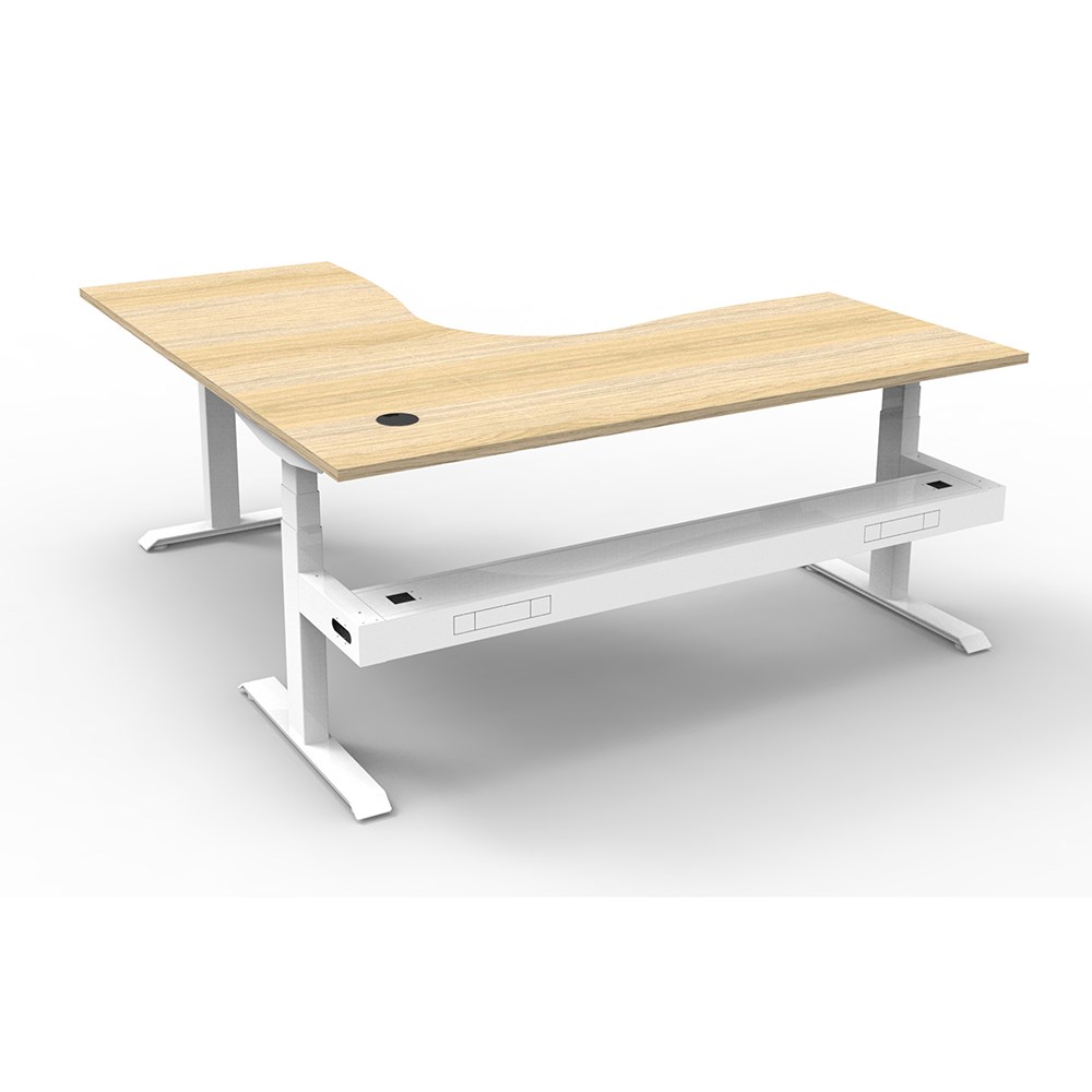 The entire Boost+ range has now been performance tested and is compliant to the AFRDI standards for general safety, strength, durability and stability in all sizes and configurations based on AS/NZS 4442:201. Natural Oak top White frame. Includes cable tray. Unit Dimensions: 1800W x 1800W x 750D x 620mm - 1270mmH. E0 rated top, powder coated base. Keypad safety lock and reminder alarm setting. Digital control panel with 3 pre-set positions and LED display panel. Anti- collision and anti-tilt technology. Dual motor 3 stage motorised legs. 140kg weight loading capacity. 10 Year Manufacturer's Warranty.