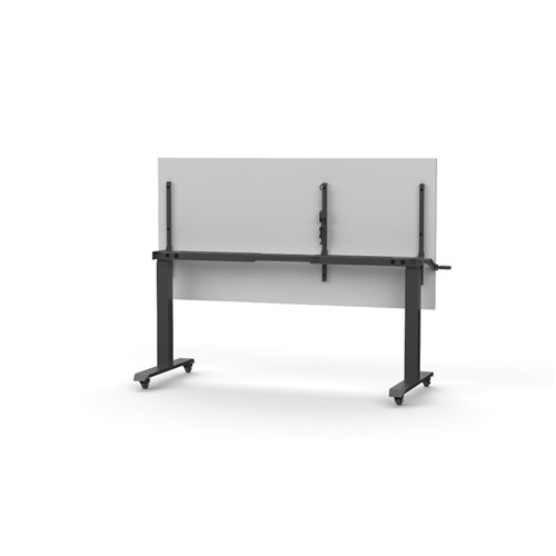 Rapidline Boost manual crank height adjustable flip top table. Natural white top black frame. Dimensions: 1500W x 750D x 725mm-1070mmH. 25mm thick table top. Side winder crank handle. Column Size: 65mm x 65mm. Foot Size: 650mm. Max Speed: 15mm per second. (10mm per full turn circle). Heavy duty castors. 2 x locking castors and 2 x non-locking castors. E0 Enviroboard. 5 Year Manufacturer's Warranty. Delivery, installation and assembly charges may apply to furniture. Please enquire to confirm.
