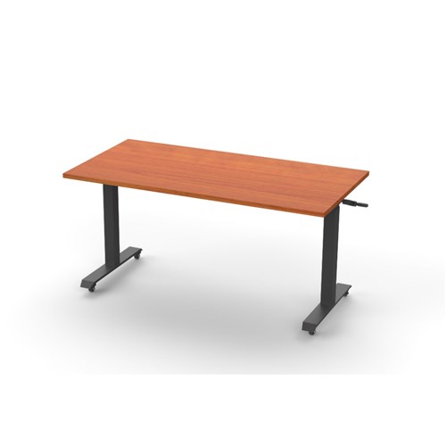 Rapidline Boost manual crank height adjustable flip top table. Cherry top black frame. Dimensions: 1800W x 900D x 725mm-1070mmH. 25mm thick table top. Side winder crank handle. Column Size: 65mm x 65mm. Foot Size: 650mm. Max Speed: 15mm per second. (10mm per full turn circle). Heavy duty castors. 2 x locking castors and 2 x non-locking castors. E0 Enviroboard. 5 Year Manufacturer's Warranty. Delivery, installation and assembly charges may apply to furniture. Please enquire to confirm.