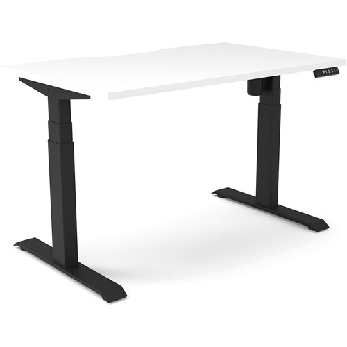 White top with Black frame. Unit Dimension: 1200mm W x 750mm D x 620-1270mm H. E0 rated top. Powdercoat base. Digital control panel with 3 pre-set positions, LED display panel, keypad safety lock & reminder alarm setting. Anti-collision technology, noise emission of less than 50DB. Lifting capacity of 80kg with a max speed of 25mm per second. 700mm wide foot size with adjustable leveling feet. 10 Year Manufacturer's Warranty. Delivery, installation and assembly charges may apply to furniture. Please enquire to confirm.