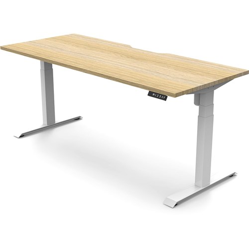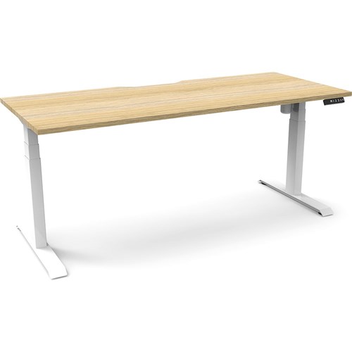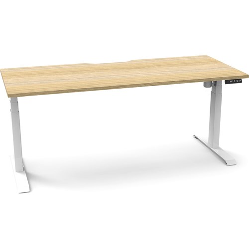 Natural Oak top with White frame. Unit Dimension: 1800mm W x 750mm D x 620-1270mm H. E0 rated top. Powdercoat base. Digital control panel with 3 pre-set positions, LED display panel, keypad safety lock & reminder alarm setting. Anti-collision technology, noise emission of less than 50DB. Lifting capacity of 80kg with a max speed of 25mm per second. 700mm wide foot size with adjustable leveling feet. 10 Year Manufacturer's Warranty. Delivery, installation and assembly charges may apply to furniture. Please enquire to confirm.