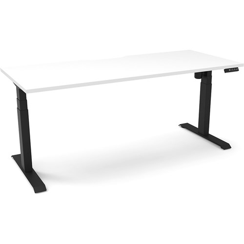 White top with Black frame. Unit Dimension: 1800mm W x 750mm D x 620-1270mm H. E0 rated top. Powdercoat base. Digital control panel with 3 pre-set positions, LED display panel, keypad safety lock & reminder alarm setting. Anti-collision technology, noise emission of less than 50DB. Lifting capacity of 80kg with a max speed of 25mm per second. 700mm wide foot size with adjustable leveling feet. 10 Year Manufacturer's Warranty. Delivery, installation and assembly charges may apply to furniture. Please enquire to confirm.