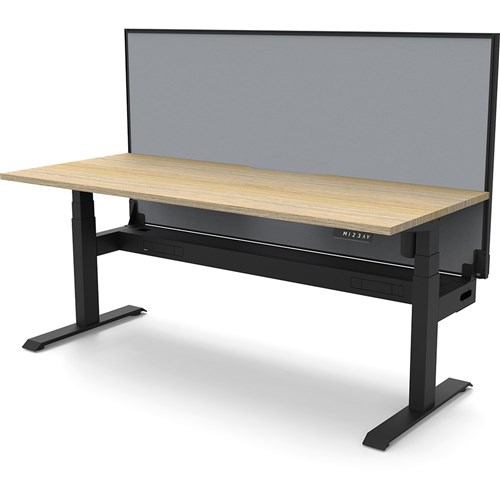 Natural Oak top with Black frame. Unit Dimension: 1200mm W x 750mm D x 1330mm H. 620-1270mm height range for desk. E0 rated top. Powdercoat base. Digital control panel with 3 pre-set positions, LED display panel, keypad safety lock & reminder alarm setting. Anti-collision technology, noise emission of less than 50DB. Lifting capacity of 80kg with a max speed of 25mm per second. 700mm wide foot size with adjustable leveling feet. Comes with 30mm thick privacy screens and cable tray for cable management. 10 Year Manufacturer's Warranty. Delivery, installation and assembly charges may apply to furniture. Please enquire to confirm.