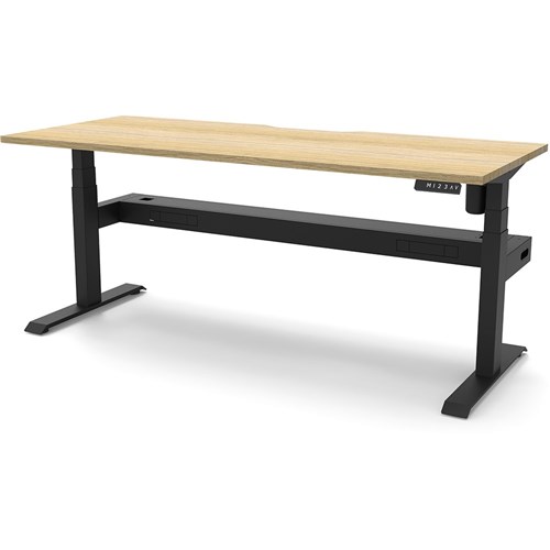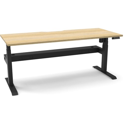 Natural Oak top with Black frame. Unit Dimension: 1500mm W x 750mm D x 620-1270mm H. Comes with cable tray for cable management. E0 rated top. Powdercoat base. Digital control panel with 3 pre-set positions, LED display panel, keypad safety lock & reminder alarm setting. Anti-collision technology, noise emission of less than 50DB. Lifting capacity of 80kg with a max speed of 25mm per second. 700mm wide foot size with adjustable leveling feet. 10 Year Manufacturer's Warranty. Delivery, installation and assembly charges may apply to furniture. Please enquire to confirm.