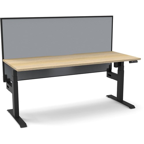 Natural Oak top with Black frame. Unit Dimension: 1200mm W x 750mm D x 1330mm H. 620-1270mm height range for desk. E0 rated top. Powdercoat base. Digital control panel with 3 pre-set positions, LED display panel, keypad safety lock & reminder alarm setting. Anti-collision technology, noise emission of less than 50DB. Lifting capacity of 80kg with a max speed of 25mm per second. 700mm wide foot size with adjustable leveling feet. Comes with 30mm thick privacy screen. 10 Year Manufacturer's Warranty. Delivery, installation and assembly charges may apply to furniture. Please enquire to confirm.