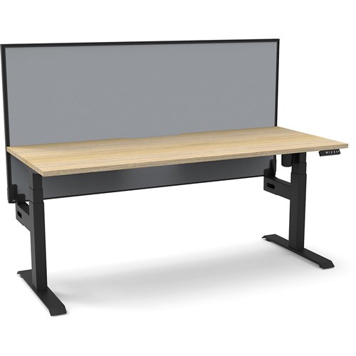 Natural Oak top with Black frame. Unit Dimension: 1800mm W x 750mm D x 1330mm H. 620-1270mm height range for desk. E0 rated top. Powdercoat base. Digital control panel with 3 pre-set positions, LED display panel, keypad safety lock & reminder alarm setting. Anti-collision technology, noise emission of less than 50DB. Lifting capacity of 80kg with a max speed of 25mm per second. 700mm wide foot size with adjustable leveling feet. Comes with 30mm thick privacy screen. 10 Year Manufacturer's Warranty. Delivery, installation and assembly charges may apply to furniture. Please enquire to confirm.
