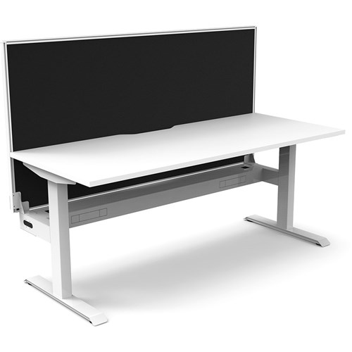 Fixed height desks to match the Boost+ range. White top with White frame. Unit Dimension: 1800mm W x 750mm D x 1330mm H. Desk height 730mm. E0 rated top. Powdercoat base. Comes with 30mm thick privacy screens and cable tray for cable management. 10 Year Manufacturer's Warranty. Delivery, installation and assembly charges may apply to furniture. Please enquire to confirm.
