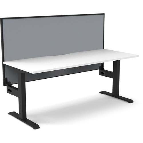 Fixed height desks to match the Boost+ range. White top with Black frame. Unit Dimension: 1500mm W x 750mm D x 1330mm H. Desk height 730mm. E0 rated top. Powdercoat base. Comes with 30mm thick privacy screen. 10 Year Manufacturer's Warranty. Delivery, installation and assembly charges may apply to furniture. Please enquire to confirm.