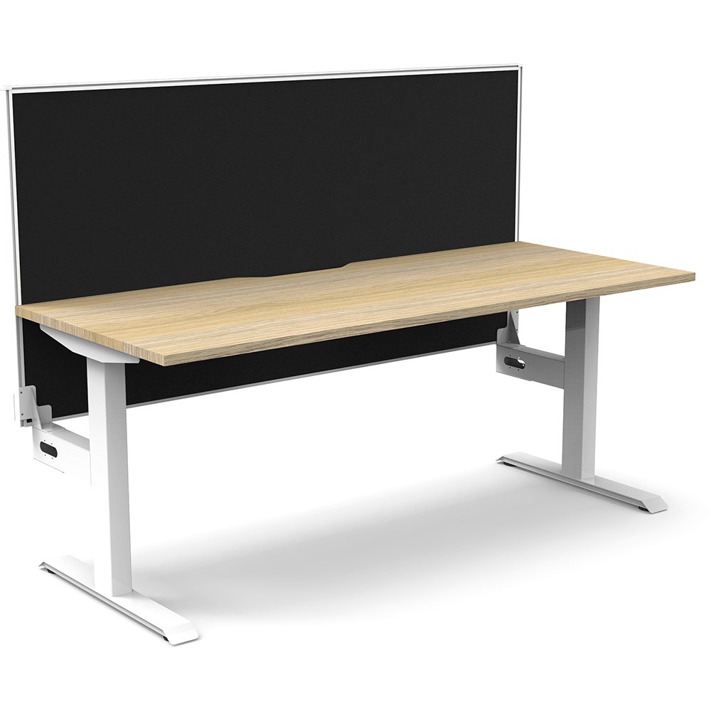 Fixed height desks to match the Boost+ range. Natural Oak top with White frame. Unit Dimension: 1800mm W x 750mm D x 1330mm H. Desk height 730mm. E0 rated top. Powdercoat base. Comes with 30mm thick privacy screen. 10 Year Manufacturer's Warranty. Delivery, installation and assembly charges may apply to furniture. Please enquire to confirm.