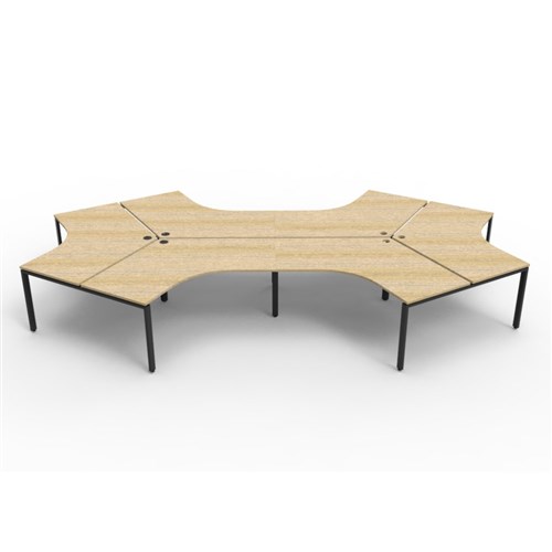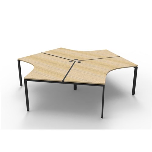 Overall Dimensions: 2866W x 2480D x 730mmH. Per User Dimensions: 1205W x 1205D x 730mmH. Natural oak worksurface with a 60 x 30mm powder coated black Profile leg underframe. 1 x 80mm diameter cable entry hole. 30mm cable access void in between double sided users. Infill rail available at additional cost. Dual cross bar for added stability. E0 enviroboard melamine worksurface. Adjustable leveling feet. 5 Year Manufacturer's Warranty. Delivery, installation and assembly charges may apply to furniture. Please enquire to confirm.