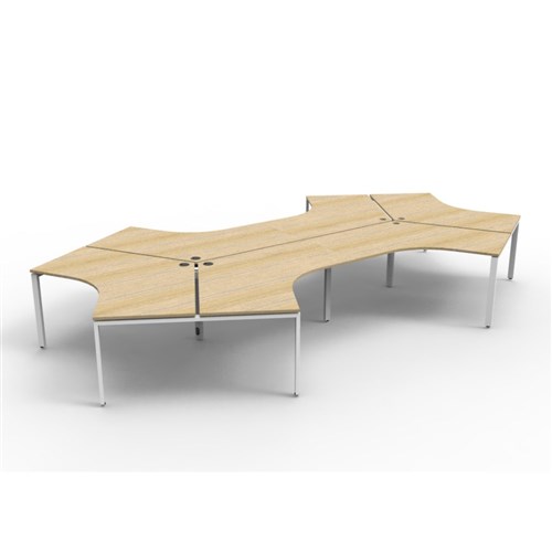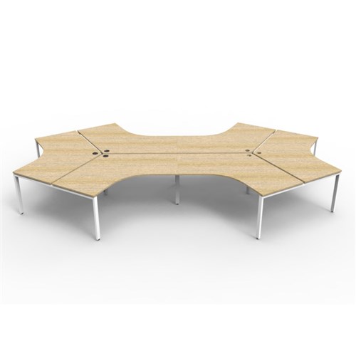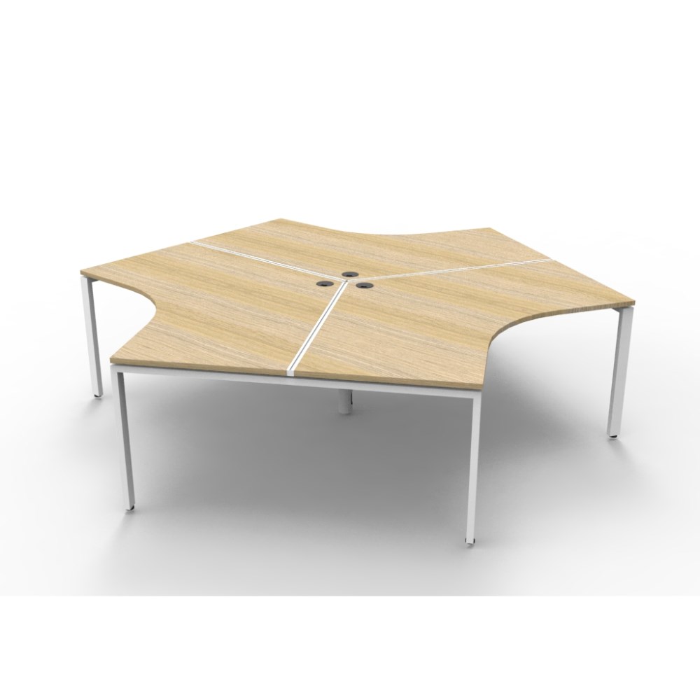 Overall Dimensions: 2866W x 2480D x 730mmH. Per User Dimensions: 1205W x 1205D x 730mmH. Natural oak worksurface with a 60 x 30mm powder coated white Profile leg underframe. 1 x 80mm diameter cable entry hole. 30mm cable access void in between double sided users. Infill rail available at additional cost. Dual cross bar for added stability. E0 enviroboard melamine worksurface. Adjustable leveling feet. 5 Year Manufacturer's Warranty. Delivery, installation and assembly charges may apply to furniture. Please enquire to confirm.