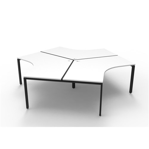Overall Dimensions: 2866W x 2480D x 730mmH. Per User Dimensions: 1205W x 1205D x 730mmH. White worksurface with a 60 x 30mm powder coated black Profile leg underframe. 1 x 80mm diameter cable entry hole. 30mm cable access void in between double sided users. Infill rail available at additional cost. Dual cross bar for added stability. E0 enviroboard melamine worksurface. Adjustable leveling feet. 5 Year Manufacturer's Warranty. Delivery, installation and assembly charges may apply to furniture. Please enquire to confirm.