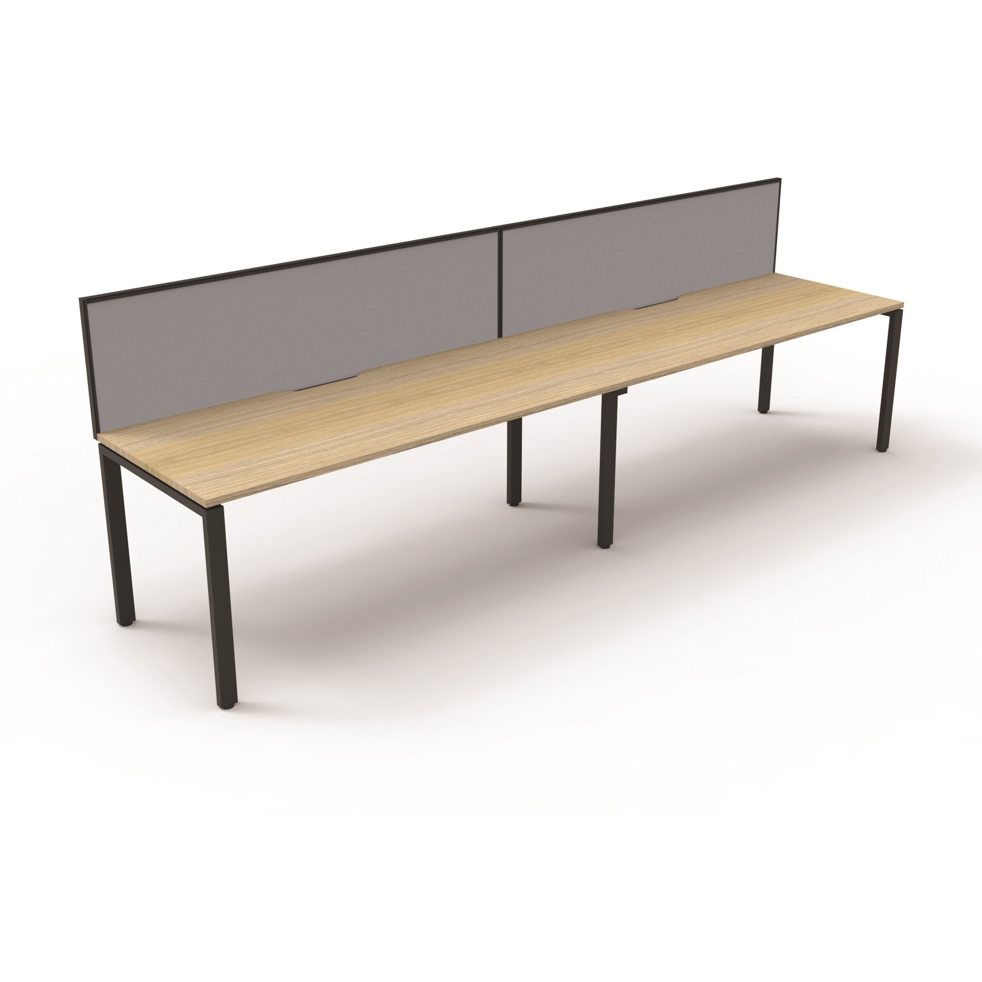 Maximise space and create an efficient working environment with Deluxe Rapid Infinity. Configure multiple workstations together to create pods of desks. Overall: 3000mm W x 780mm D x 1200mm H (including screen). Per User: 1500mm W x 750mm D x 730mm H. 495mm H x 30mm T pinnable privacy screen upholstered in grey fabric with matching black powder coat extrusion. Natural Oak worksurface with 410mm W x 50mm D scallop cable access. 60mm x 30mm Profile Leg adds a minimalist look to each workstation. Deeper 750mm top. Double support rail for extra strength. E0 Enviroboard. 5 Year Manufacturer's Warranty. Delivery, installation and assembly charges may apply to furniture. Please enquire to confirm.