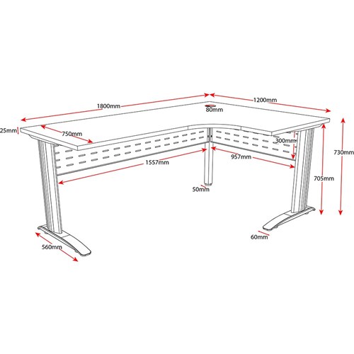 Natural Oak and Silver in colour. Sturdy powder coated frame and legs. Comes with metal perforated modesty panel. E0 melamine top. 1 x cable entry hole in corner of top. 750mm deep top for more workspace. Adjustable feet. 5 Years Manufacturer's Warranty. Delivery, installation and assembly charges may apply to furniture. Please enquire to confirm.