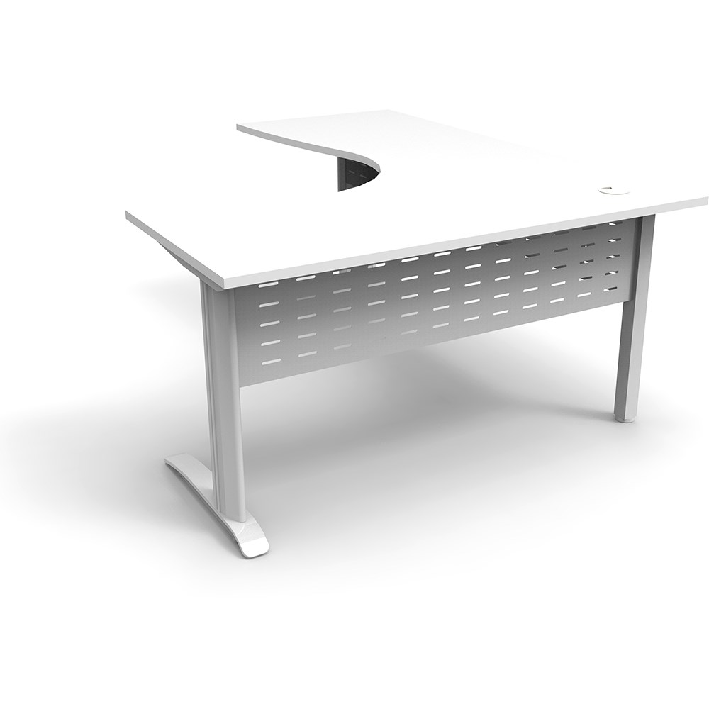 Natural White and White in colour. Sturdy powder coated frame and legs. Comes with metal perforated modesty panel. E0 melamine top. 1 x cable entry hole in corner of top. 750mm deep top for more workspace. Adjustable feet. 5 Years Manufacturer Warranty. Delivery, installation and assembly charges may apply to furniture. Please enquire to confirm.