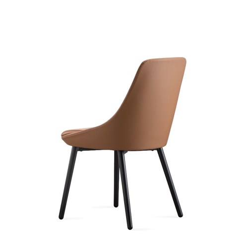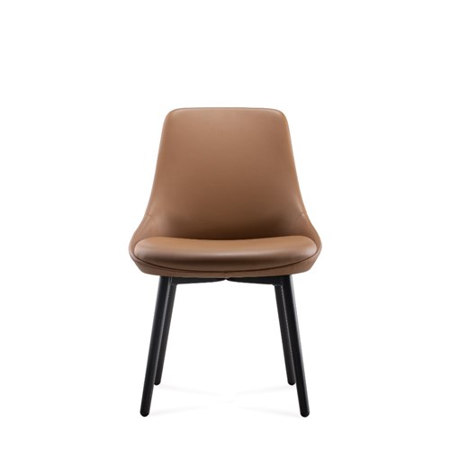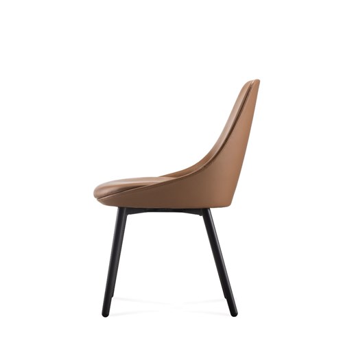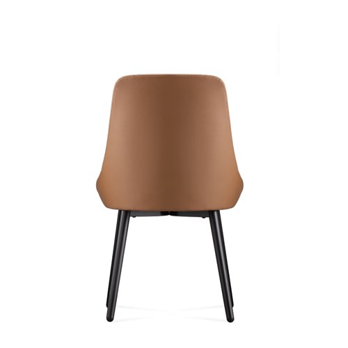 Eros breakout room or dining chair. Robust steel 4 leg frame finished in black powder coat Amber PU leather seat. Dimensions: 530W x 580D x 830H. GreenGuard Gold certified. 5 Year Manufacturer's Warranty. Delivery, installation and assembly charges may apply to furniture. Please enquire to confirm.