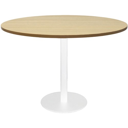 Rapidline Estillo Disc Base Round Table 1200D x 755mmH Oak Top White Base