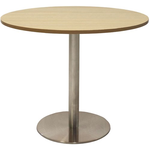 Rapidline Estillo Disc Base Round Table 900D x 755mmH Oak Top Silver Base