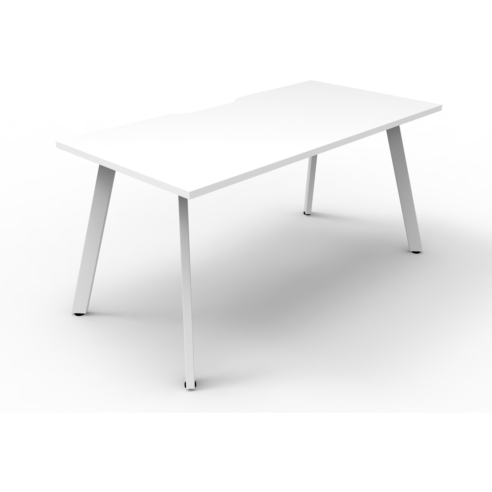 Natural White worksurface with 410mm W x 50mm D with white frame. Scallop cable access. No screen. 60mm x 30mm splayed leg with power coated underframe. Adjustable levelling feet. E0 Enviroboard. 5 Year Manufacturer's Warranty. Delivery, installation and assembly charges may apply to furniture. Please enquire to confirm.