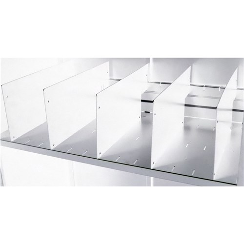 Pack of 5 shelf dividers for Slotted Shelf. Unit Dimensions: 320-390W x 2D x 185mmH. 10 Year Manufacturer's Warranty. Delivery, installation and assembly charges may apply to furniture. Please enquire to confirm.