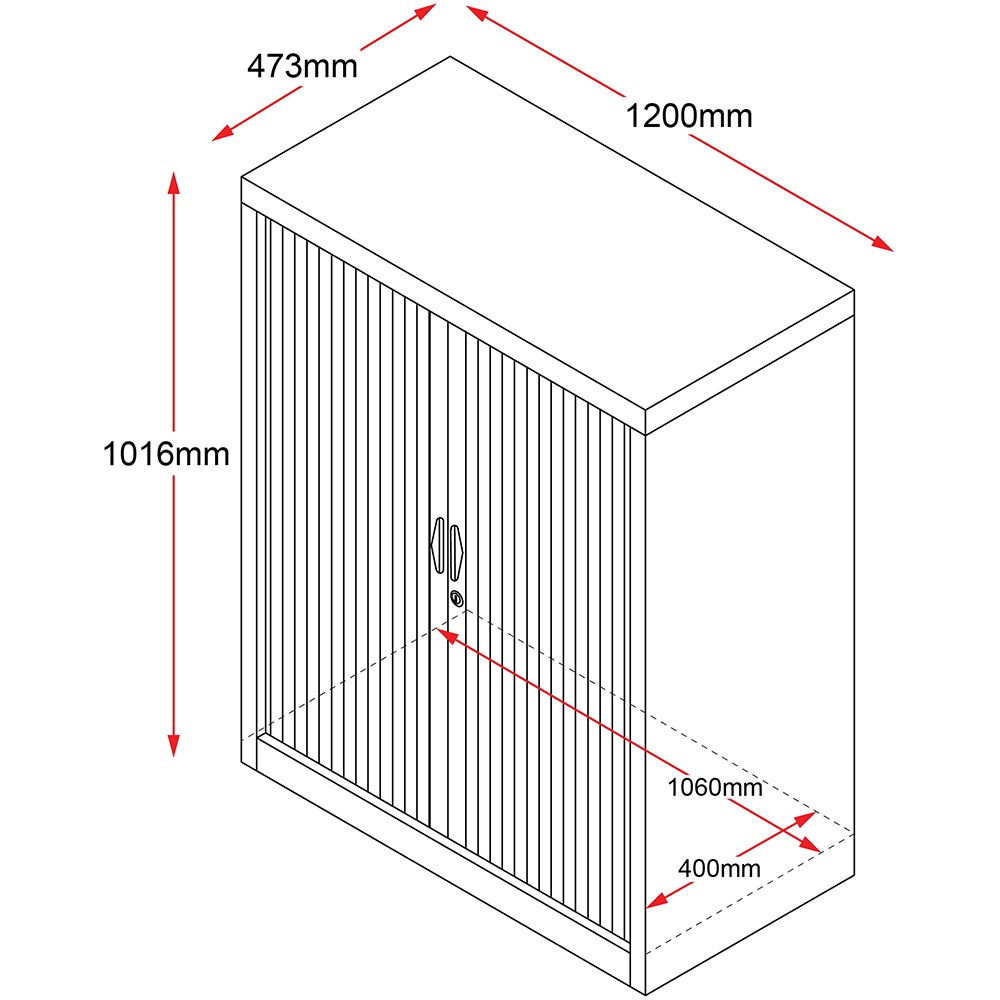 • Rapidline Go Tambour Door Cupboard No Shelves Included 1200W x 473D x 1016mmH Black