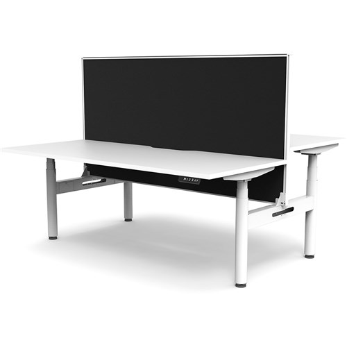 White top with White frame. Unit Dimension: 1800mm W x 1500mm D x 1330mm H. 620-1270mm height range for desk, 750mm depth per user. E0 rated top. Powdercoat base. Digital control panel with 3 pre-set positions, LED display panel, keypad safety lock & reminder alarm setting. Anti-collision technology, noise emission of less than 50DB. Lifting capacity of 120kg with a max speed of 38mm per second. 70mm diameter round column legs. 700mm wide foot size with adjustable leveling feet, return foot: 700mm. Comes with 30mm thick privacy screen. 10 Year Manufacturer's Warranty. Delivery, installation and assembly charges may apply to furniture. Please enquire to confirm.