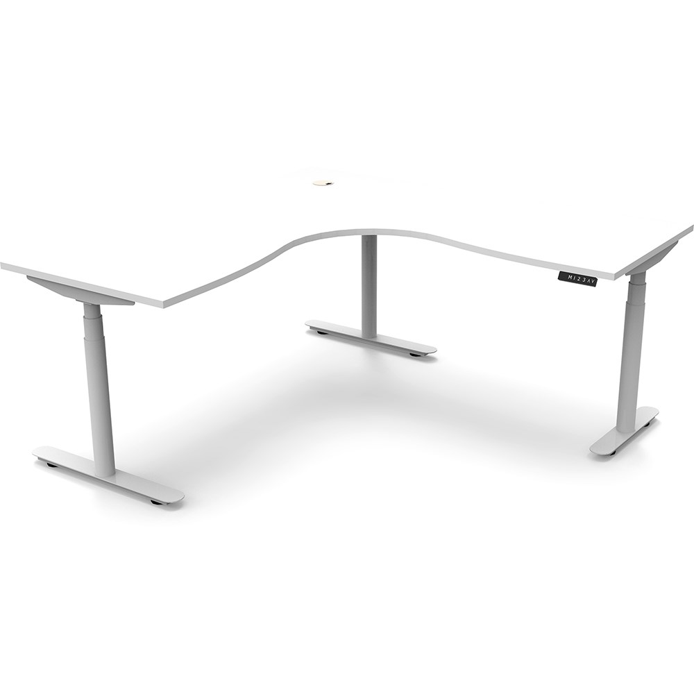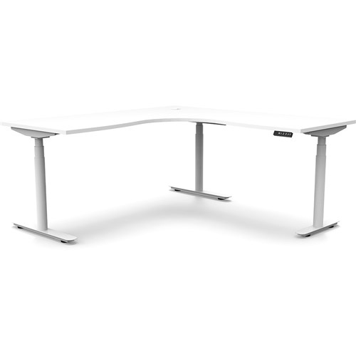 White top with White frame. Unit Dimension: 1500/1500mm W x 750mm D x 620-1270mm H. E0 rated top. Powdercoat base. Digital control panel with 3 pre-set positions, LED display panel, keypad safety lock & reminder alarm setting. Anti-collision technology, noise emission of less than 50DB. Lifting capacity of 120kg with a max speed of 38mm per second. 70mm diameter round column legs. 700mm wide foot size with adjustable leveling feet, return foot: 700mm. 10 Year Manufacturer's Warranty. Delivery, installation and assembly charges may apply to furniture. Please enquire to confirm.