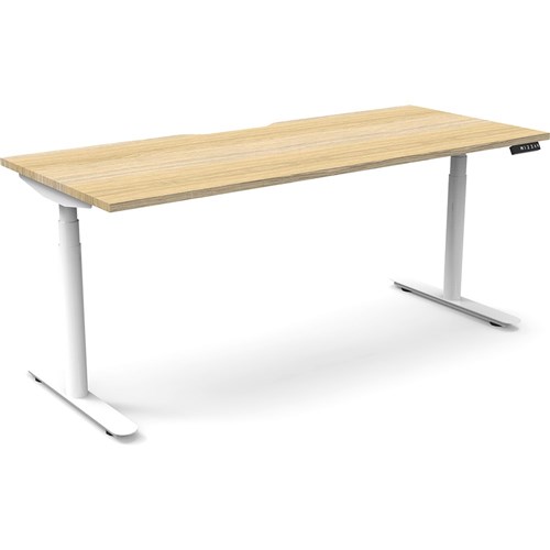 Natural Oak top with White frame. Unit Dimension: 1500mm W x 750mm D x 620-1270mm H. E0 rated top. Powdercoat base. Digital control panel with 3 pre-set positions, LED display panel, keypad safety lock & reminder alarm setting. Anti-collision technology, noise emission of less than 50DB. Lifting capacity of 120kg with a max speed of 38mm per second. 70mm diameter round column legs. 700mm wide foot size with adjustable leveling feet, return foot: 700mm. 10 Year Manufacturer's Warranty. Delivery, installation and assembly charges may apply to furniture. Please enquire to confirm.