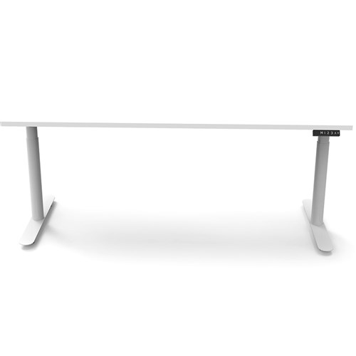 White top with White frame. Unit Dimension: 1500mm W x 750mm D x 620-1270mm H. E0 rated top. Powdercoat base. Digital control panel with 3 pre-set positions, LED display panel, keypad safety lock & reminder alarm setting. Anti-collision technology, noise emission of less than 50DB. Lifting capacity of 120kg with a max speed of 38mm per second. 70mm diameter round column legs. 700mm wide foot size with adjustable leveling feet, return foot: 700mm. 10 Year Manufacturer's Warranty. Delivery, installation and assembly charges may apply to furniture. Please enquire to confirm.