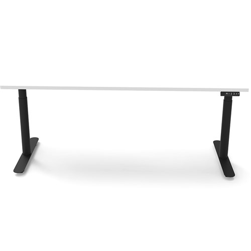 White top with Black frame. Unit Dimension: 1800mm W x 750mm D x 620-1270mm H. E0 rated top. Powdercoat base. Digital control panel with 3 pre-set positions, LED display panel, keypad safety lock & reminder alarm setting. Anti-collision technology, noise emission of less than 50DB. Lifting capacity of 120kg with a max speed of 38mm per second. 70mm diameter round column legs. 700mm wide foot size with adjustable leveling feet, return foot: 700mm. 10 Year Manufacturer's Warranty. Delivery, installation and assembly charges may apply to furniture. Please enquire to confirm.