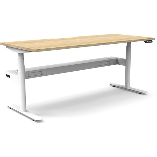 Natural Oak top with White frame. Unit Dimension: 1200mm W x 750mm D x 620-1270mm H. Comes with cable tray for cable management. E0 rated top. Powdercoat base. Digital control panel with 3 pre-set positions, LED display panel, keypad safety lock & reminder alarm setting. Anti-collision technology, noise emission of less than 50DB. Lifting capacity of 120kg with a max speed of 38mm per second. 70mm diameter round column legs. 700mm wide foot size with adjustable leveling feet, return foot: 700mm. Comes with cable tray for cable management. 10 Year Manufacturer's Warranty. Delivery, installation and assembly charges may apply to furniture. Please enquire to confirm.