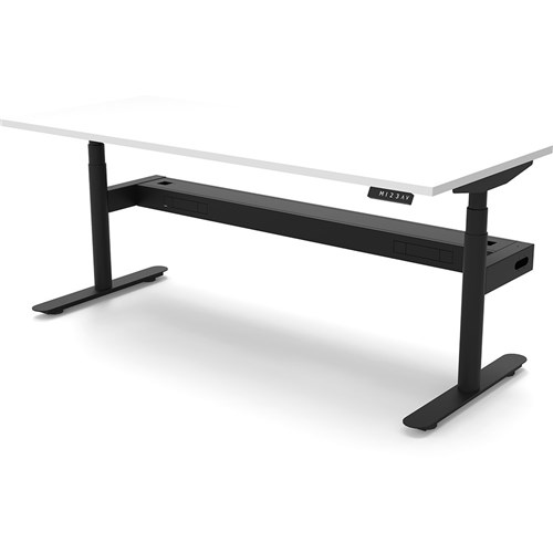 White top with Black frame. Unit Dimension: 1800mm W x 750mm D x 620-1270mm H. Comes with cable tray for cable management. E0 rated top. Powdercoat base. Digital control panel with 3 pre-set positions, LED display panel, keypad safety lock & reminder alarm setting. Anti-collision technology, noise emission of less than 50DB. Lifting capacity of 120kg with a max speed of 38mm per second. 70mm diameter round column legs. 700mm wide foot size with adjustable leveling feet, return foot: 700mm. Comes with cable tray for cable management. 10 Year Manufacturer's Warranty. Delivery, installation and assembly charges may apply to furniture. Please enquire to confirm.