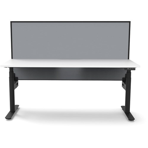 White top with Black frame. Unit Dimension: 1500mm W x 750mm D x 1330mm H. 620-1270mm height range for desk. E0 rated top. Powdercoat base. Digital control panel with 3 pre-set positions, LED display panel, keypad safety lock & reminder alarm setting. Anti-collision technology, noise emission of less than 50DB. Lifting capacity of 120kg with a max speed of 38mm per second. 70mm diameter round column legs. 700mm wide foot size with adjustable leveling feet, return foot: 700mm. Comes with 30mm thick privacy screen. 10 Year Manufacturer's Warranty. Delivery, installation and assembly charges may apply to furniture. Please enquire to confirm.