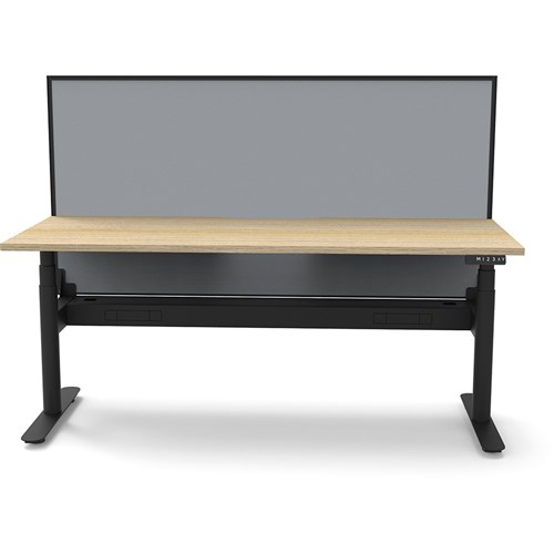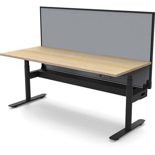 Natural Oak top with Black frame. Unit Dimension: 1200mm W x 750mm D x 1330mm H. 620-1270mm height range for desk. E0 rated top. Powdercoat base. Digital control panel with 3 pre-set positions, LED display panel, keypad safety lock & reminder alarm setting. Anti-collision technology, noise emission of less than 50DB. Lifting capacity of 120kg with a max speed of 38mm per second. 70mm diameter round column legs. 700mm wide foot size with adjustable leveling feet, return foot: 700mm. Comes with 30mm thick privacy screens and cable tray for cable management. 10 Year Manufacturer's Warranty. Delivery, installation and assembly charges may apply to furniture. Please enquire to confirm.