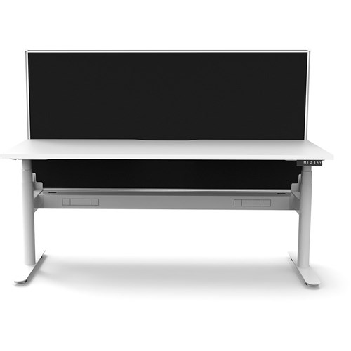 White top with White frame. Unit Dimension: 1800mm W x 750mm D x 1330mm H. 620-1270mm height range for desk. E0 rated top. Powdercoat base. Digital control panel with 3 pre-set positions, LED display panel, keypad safety lock & reminder alarm setting. Anti-collision technology, noise emission of less than 50DB. Lifting capacity of 120kg with a max speed of 38mm per second. 70mm diameter round column legs. 700mm wide foot size with adjustable leveling feet, return foot: 700mm. Comes with 30mm thick privacy screens and cable tray for cable management. 10 Year Manufacturer's Warranty. Delivery, installation and assembly charges may apply to furniture. Please enquire to confirm.