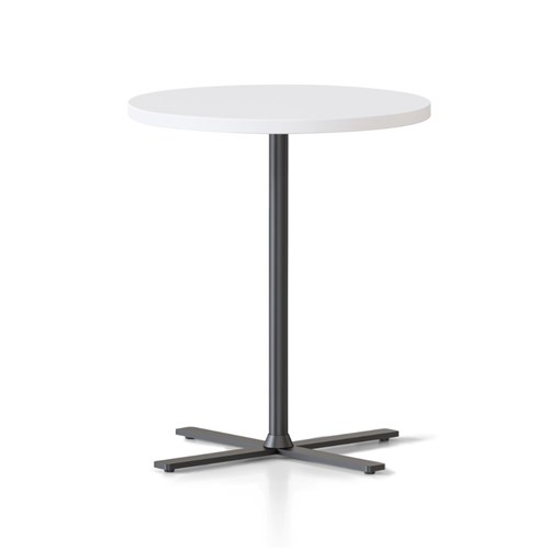 Dimensions: 500mm Diameter x 587mm High. 25mm thick table top. 4 leaf cross base powder coated underframe. Adjustable leveling feet. E0 enviroboard melamine worksurface. Note: Order with 587mmH Kolo table to create a nesting pair. 5 Year Manufacturer's Warranty. Delivery, installation and assembly charges may apply to furniture. Please enquire to confirm.