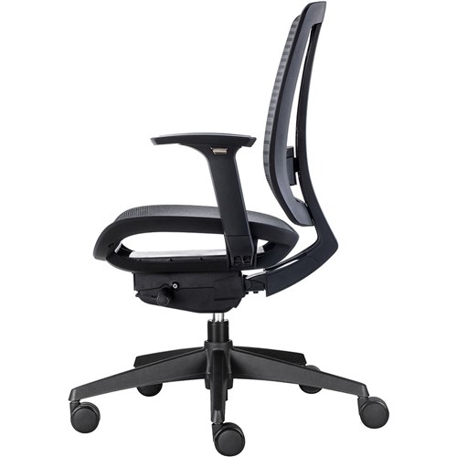 A stylish and ideal chair for any type of work environment. The mesh finish provides the ultimate comfort and breathability. Donati-Dopo weight sensitive mechanism with 5 positions. Black Korean mesh back rest and seat pan. Height adjustable nylon arm rests. Black 5 star base with black 60/25 PU castors. 135 Kg weight rating. Chair Dimensions: Seat 490W x 515D x Seat 470-540mmH. Overall height: 1150-1220mmH. 10 Year Manufacturer's Warranty.