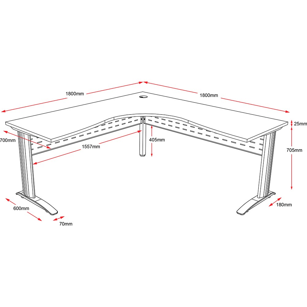 • One piece corner workstation with 25mm top.