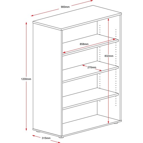 Rapidline Rapid Worker Bookcase 3 Shelves 900W x 315D x 1200mmH Cherry And Ironstone 502209 In Stock Low Stock Low Stock Please See Attributes