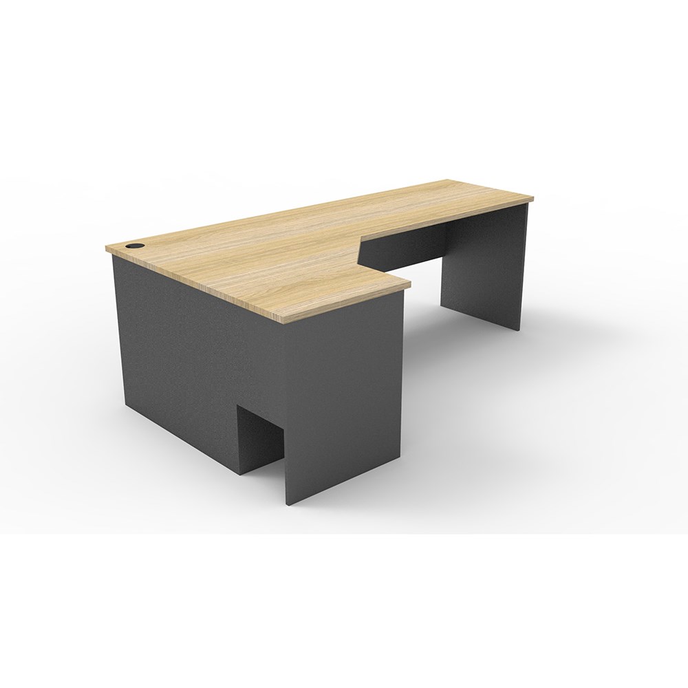 Natural Oak and Ironstone in colour. 3 piece corner workstation. Matching lockable drawers, mobile pedestal and hob available as extras. E0 enviroboard. 5 Years Manufacturer's Warranty.