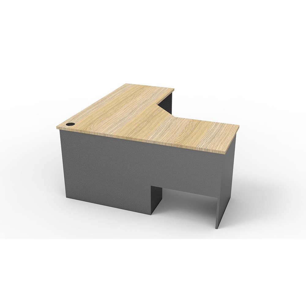 Natural Oak and Ironstone in colour. 3 piece corner workstation. Matching lockable drawers, mobile pedestal and hob available as extras. E0 enviroboard. 5 Years Manufacturer's Warranty.