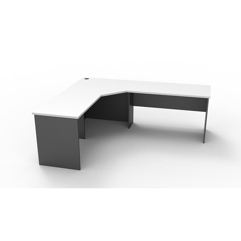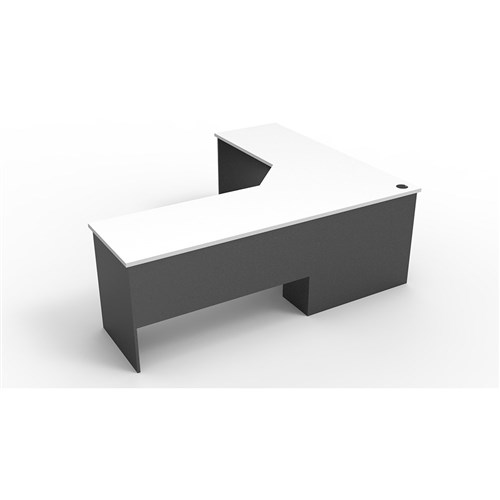 Natural White and Ironstone in colour. 3 piece corner workstation. Matching lockable drawers, mobile pedestal and hob available as extras. E0 enviroboard. 5 Years Manufacturer's Warranty.