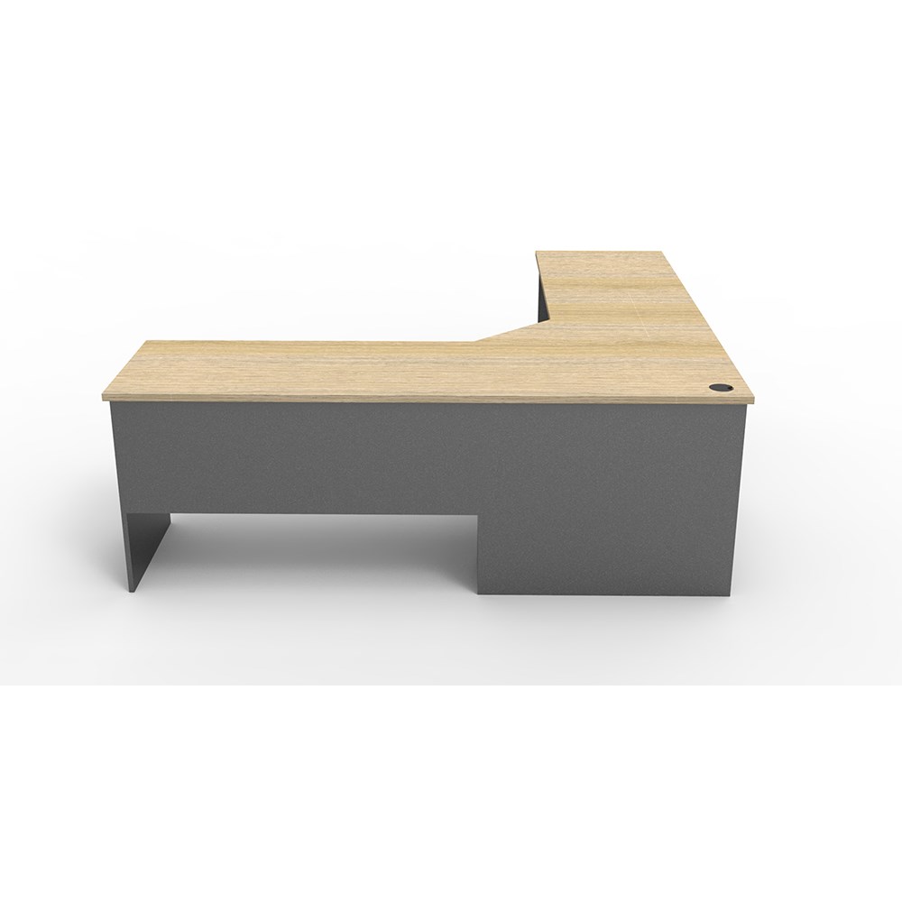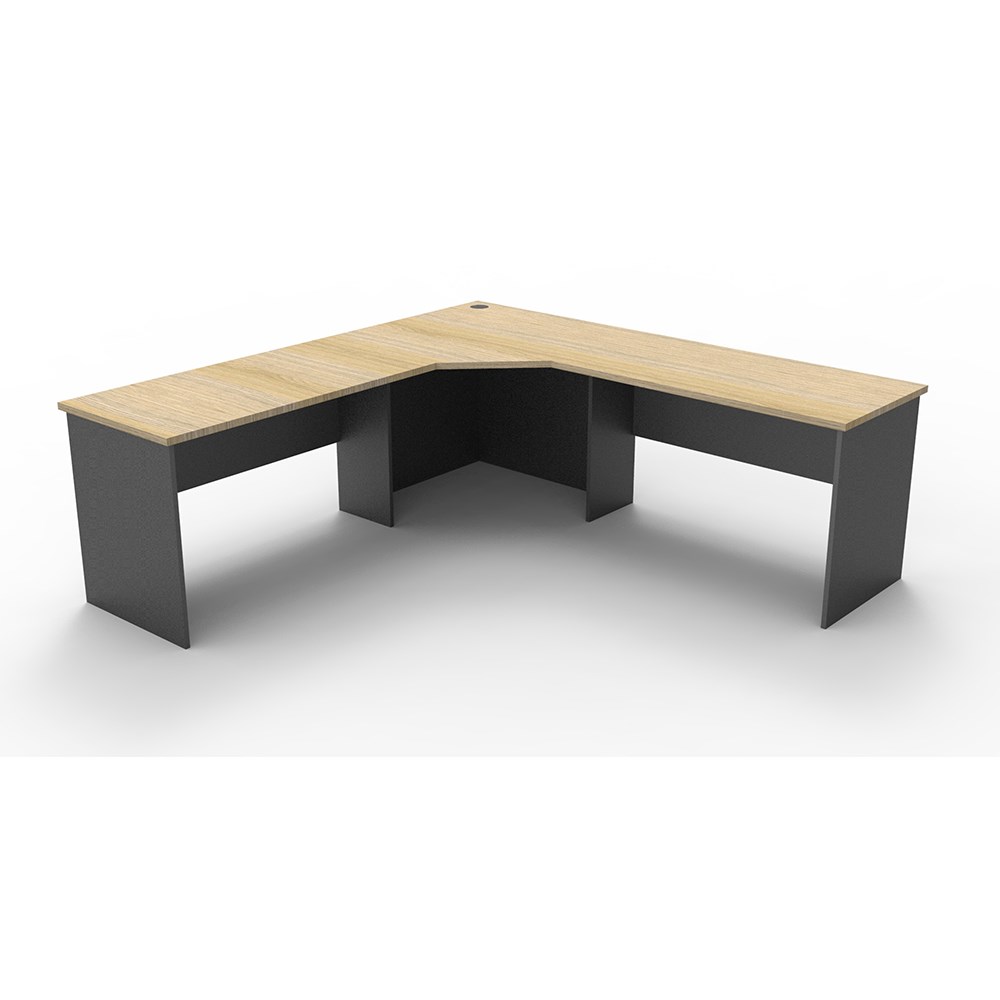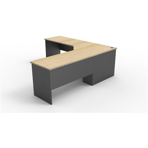 Natural Oak and Ironstone in colour. 3 piece corner workstation. Matching lockable drawers, mobile pedestal and hob available as extras. E0 enviroboard. 5 Years Manufacturer's Warranty.