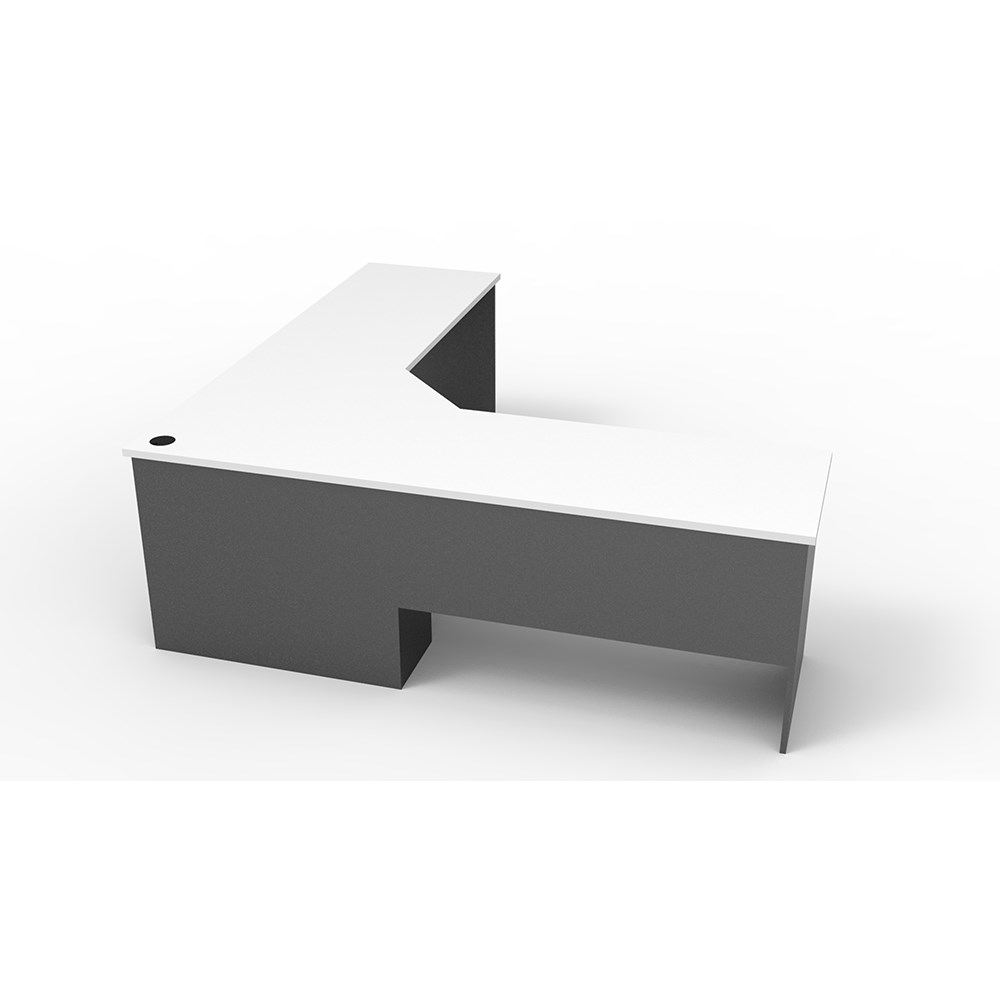 Natural White and Ironstone in colour. 3 piece corner workstation. Matching lockable drawers, mobile pedestal and hob available as extras. E0 enviroboard. 5 Years Manufacturer's Warranty.