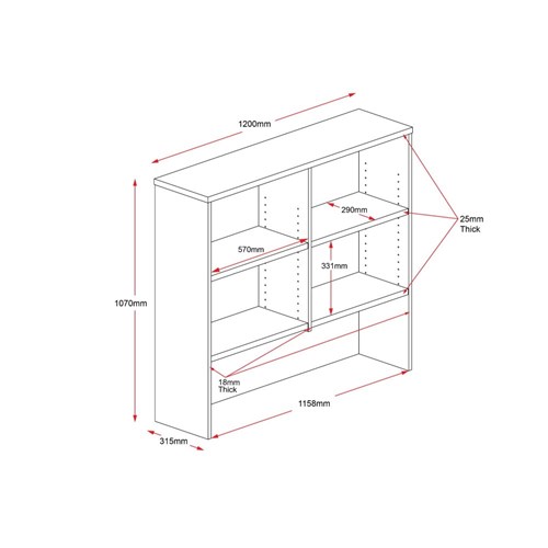 Rapidline Rapid Worker Overhead Hutch 1200W x 315D x 1070mmH Cherry And Ironstone