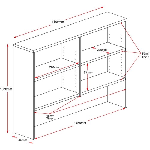 Rapidline Rapid Worker Overhead Hutch 1500W x 315D x 1070mmH Cherry And Ironstone 502270 In Stock Low Stock Low Stock Please See Attributes