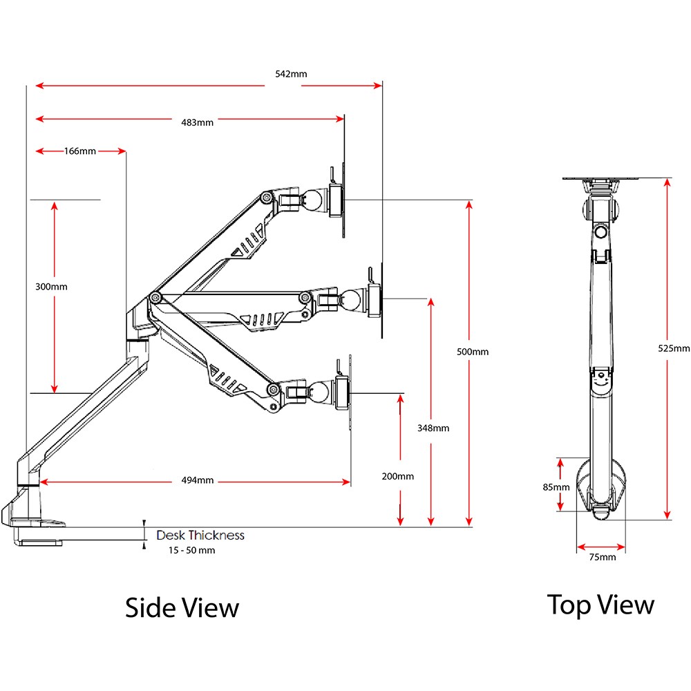 180-480mm height range. 360 degree adjustment. Suits up to 24 inch monitors. Gas operated. Load rating up to 8kg. 3 Year Manufacturer's Warranty.