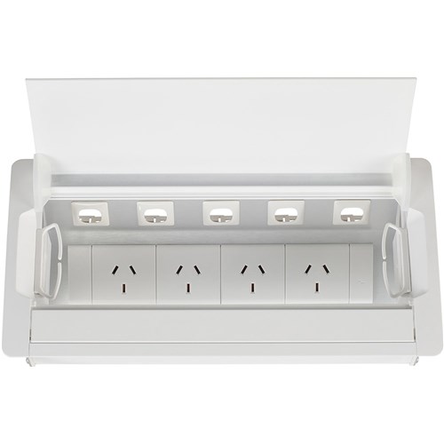 4 x auto switched GPO and provisions for 5 data. Lid closes to obscure power and data points. Links to wall starter or power pole kit. Use in conjunction with SW duct to avoid trip hazard. Unit Dimension: 310W x 154D x 115mmH. 2 Year Manufacturer's Warranty.