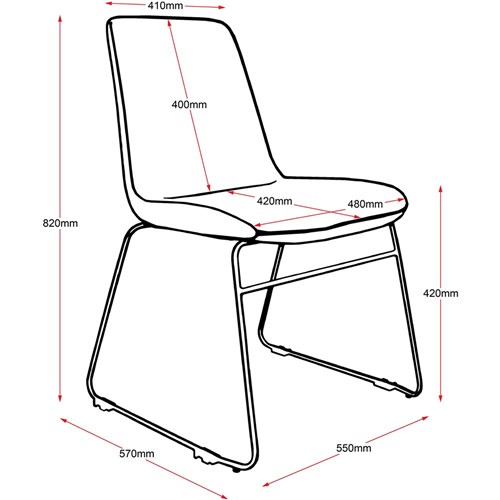 Comfortable conference or meeting chair with sturdy powder coated sled base. Links and stacks. Weight rating 110kg. Overall Size: 550W x 570D x 820mmH. Chair Dimensions: 480W x 420D x 420mmH. 5 Year Manufacturer's Warranty.