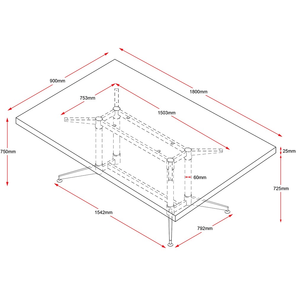 Rapidline Typhoon Boardroom Table 1800W x 900D x 750mmH Oak Top Black Frame
